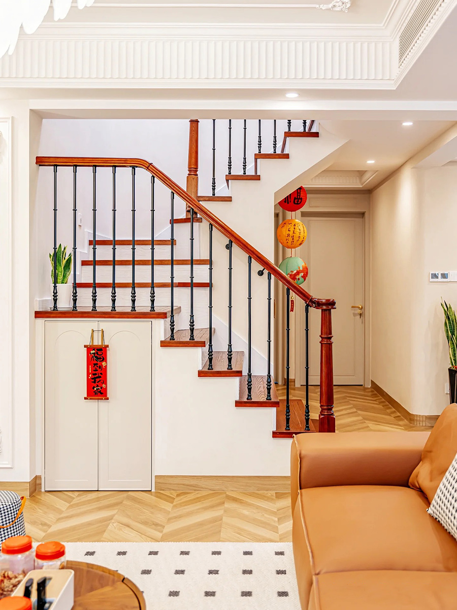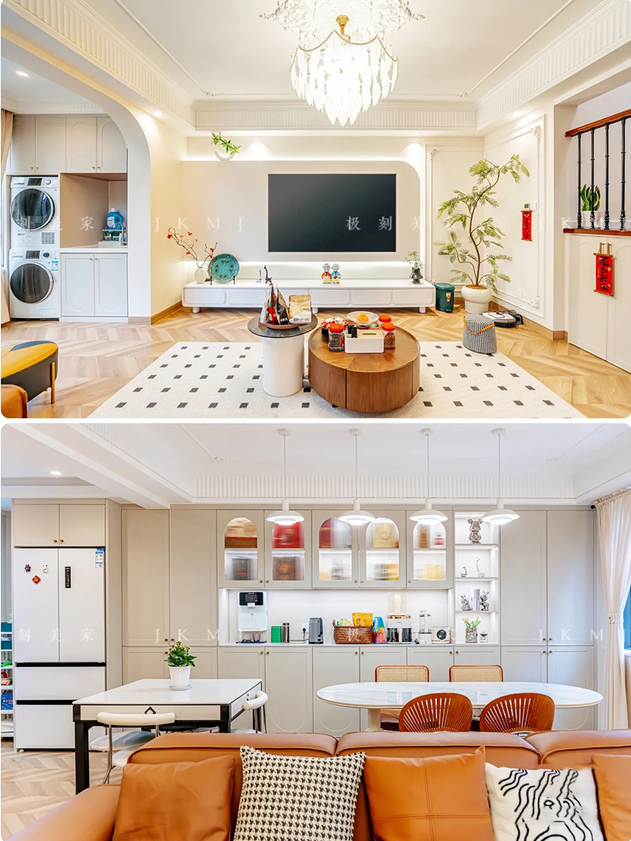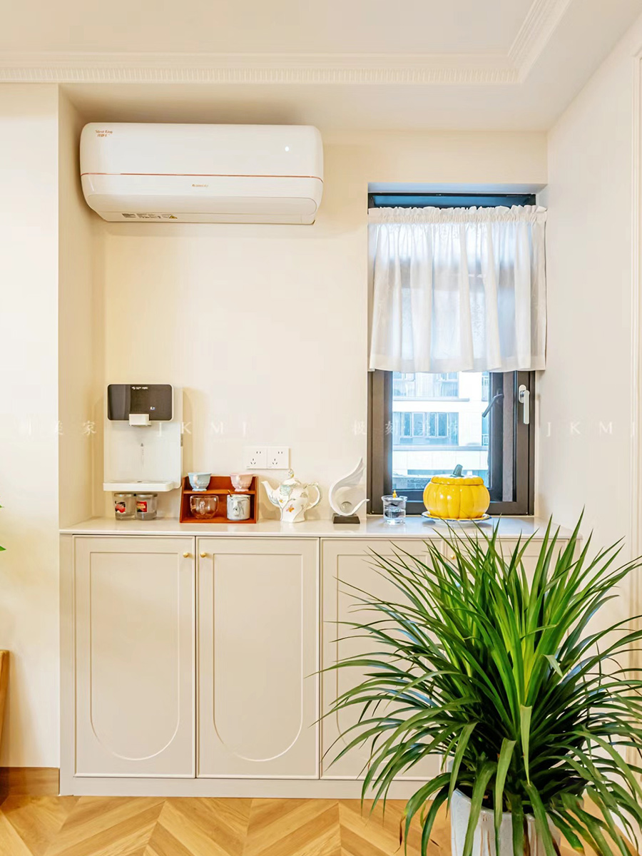 大面积使用米白色加上法式pu线条,整体充满法式复古的氛围感