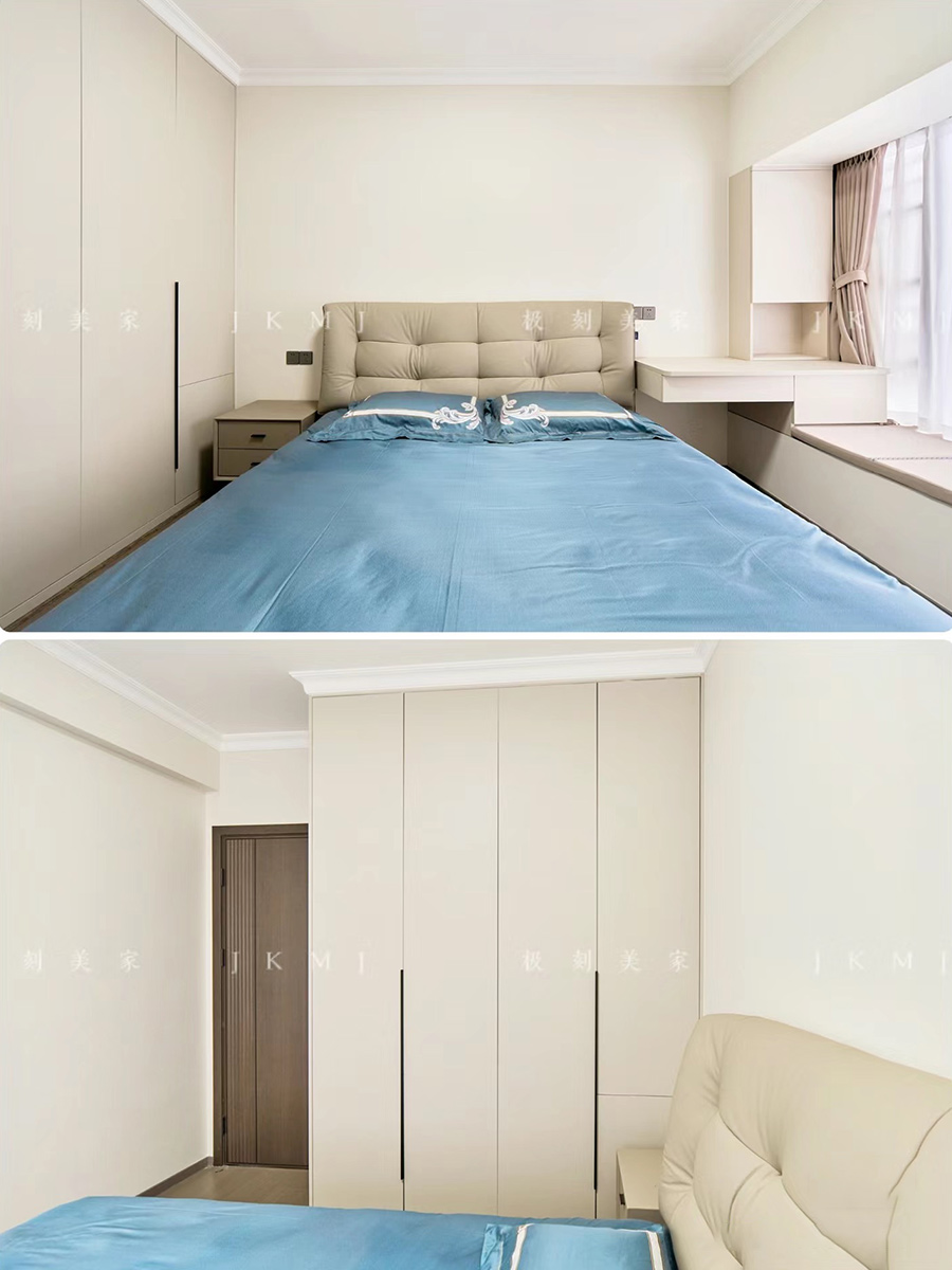 卧室做满墙衣柜,充分利用飘窗空间,满足客户的收纳需求