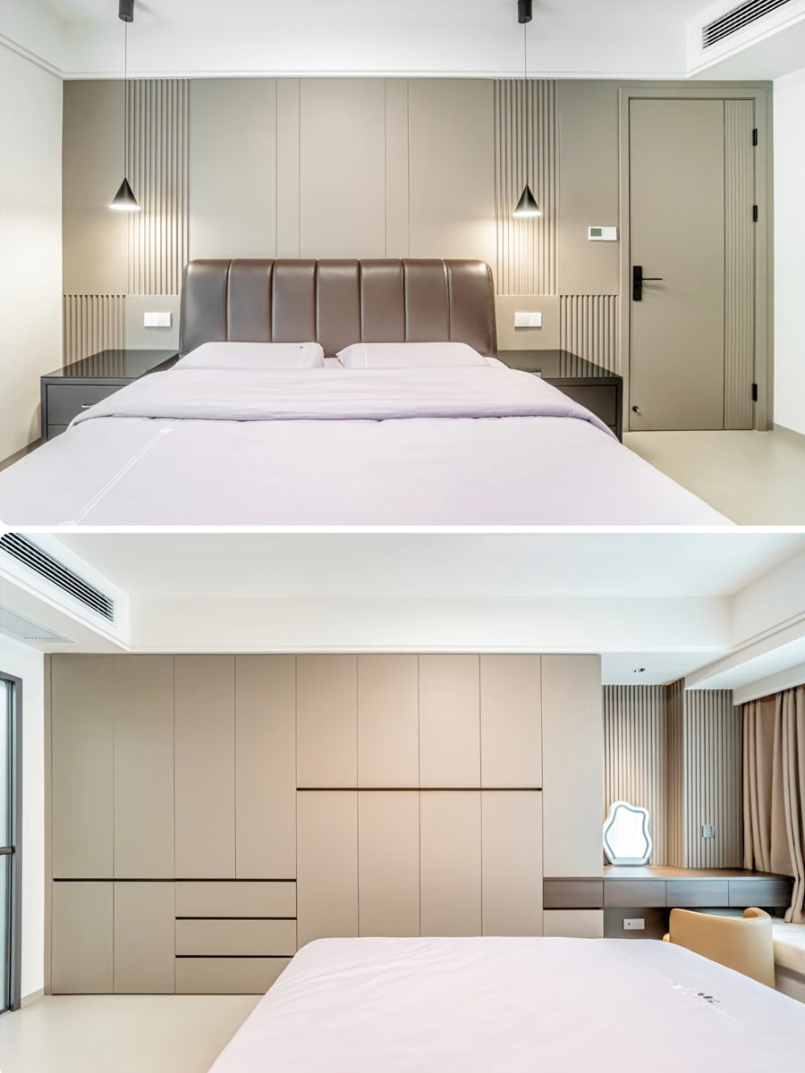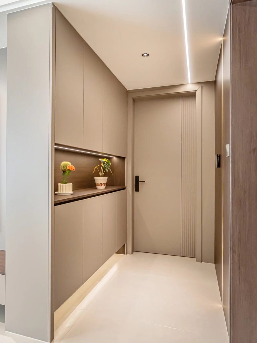 全房深木色,质感又简约,门墙柜颜色造型一致
