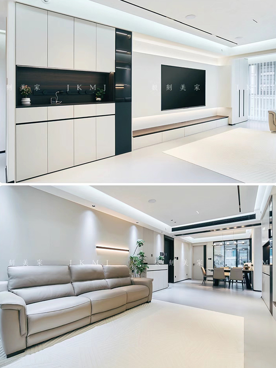 悬浮电视背景墙连接收纳柜,满足收纳需求