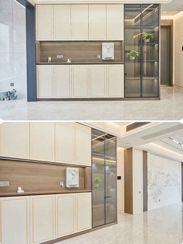 ✅全屋定制:柜体板材是十环认证万象天冠足18厚杉木实芯板,柜门做的是欧松板模压门;五金是奥地利进口百隆五金、彻底实现门墙柜一体化;