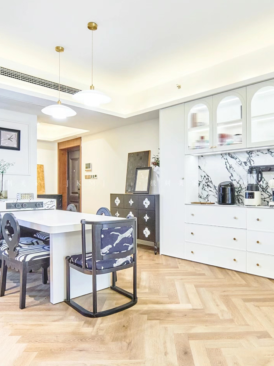 全屋同款同色同造型,穿插黑色成品柜,增添氛围感