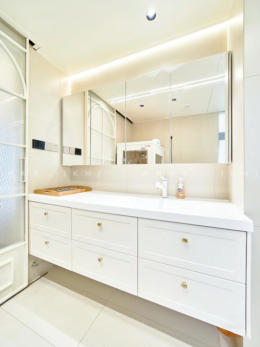 天使白的造型柜搭配金色手柄,优雅感拉满