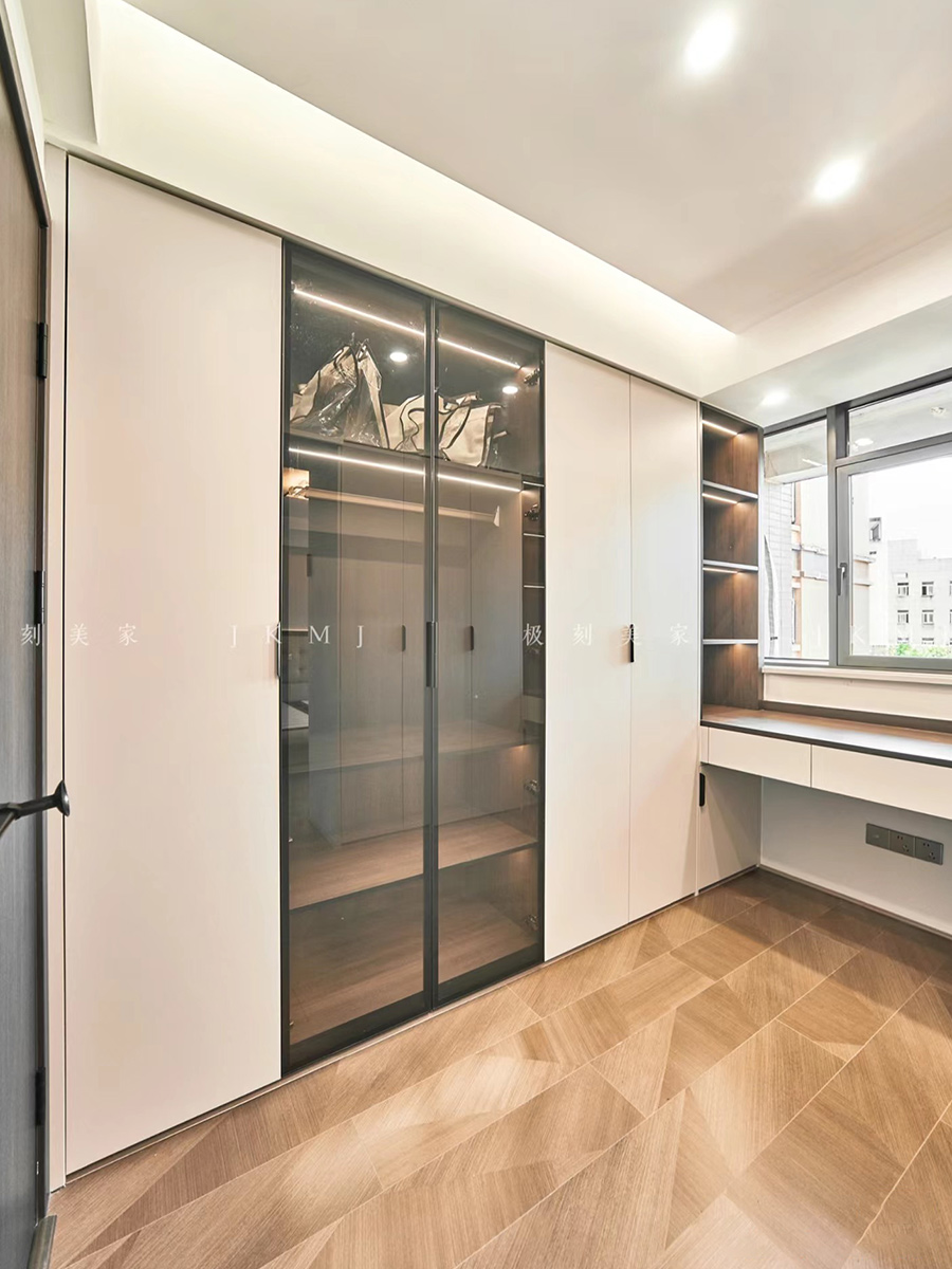 主卧做套房设计,衣帽间做玻璃柜门,整体更有层次感