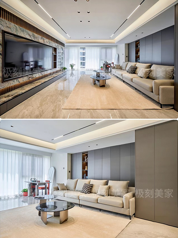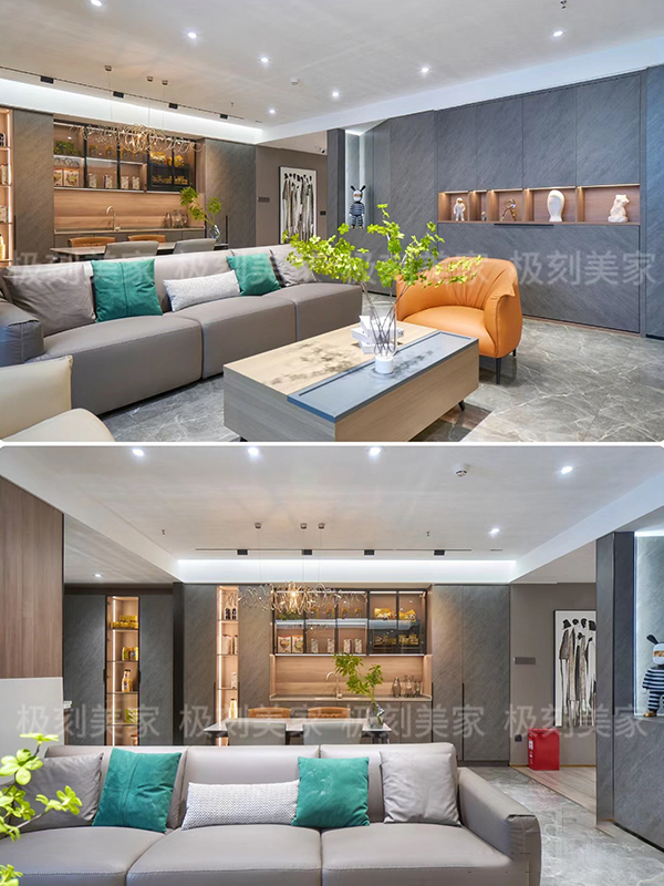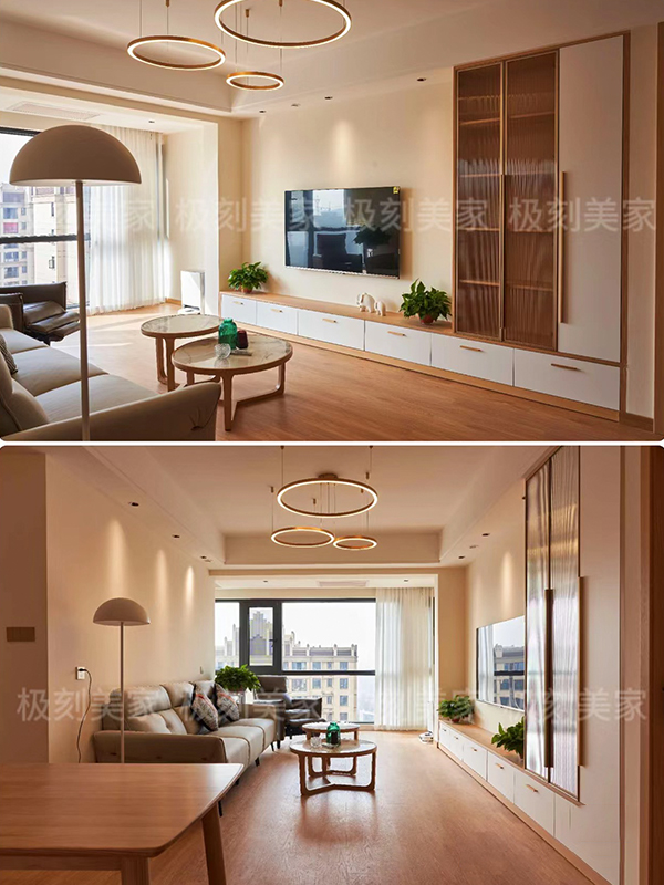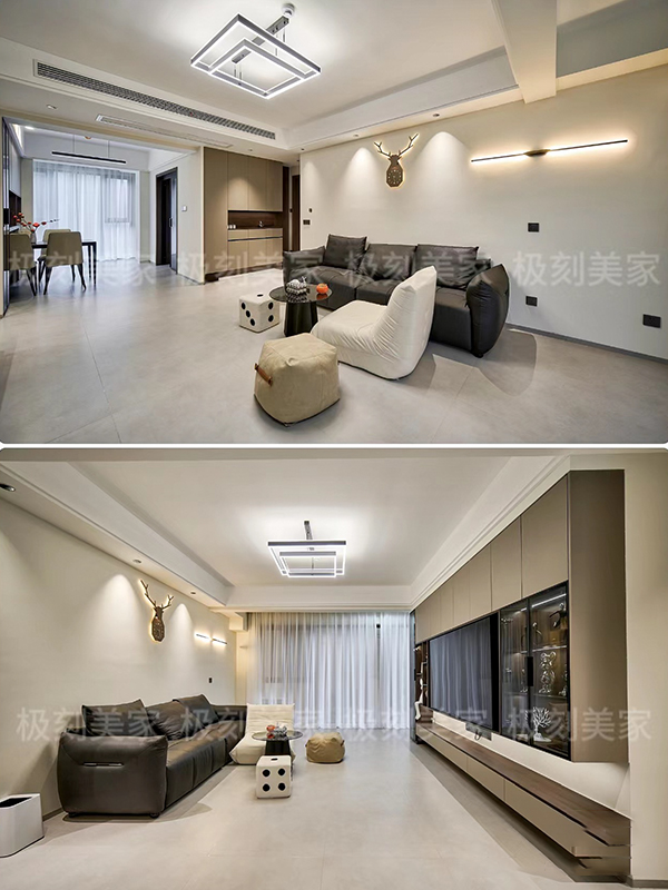 3、电视背景柜和餐边柜同款同色同造型,整体性get