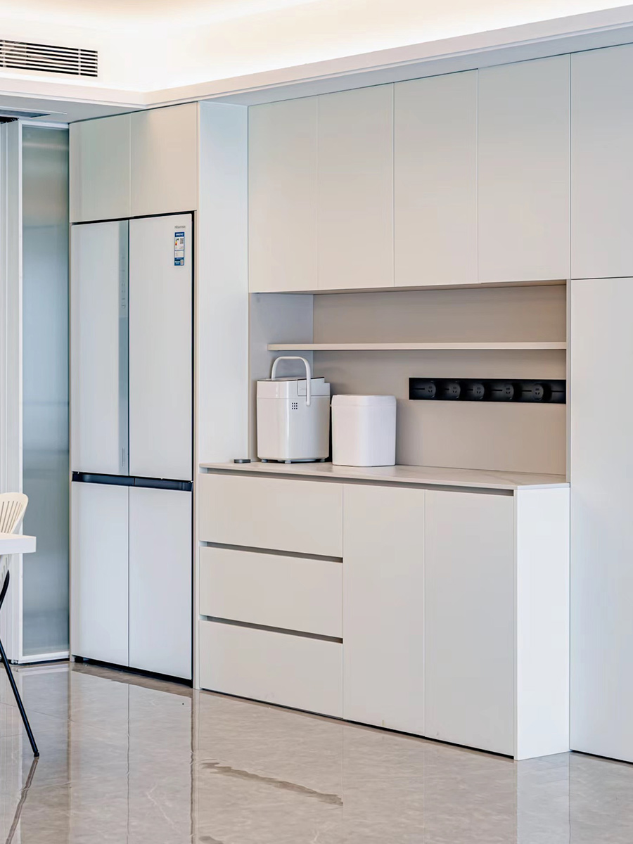 柜门免拉手设计,视觉上更显干净简洁,搭配镂空设计,氛围感满满