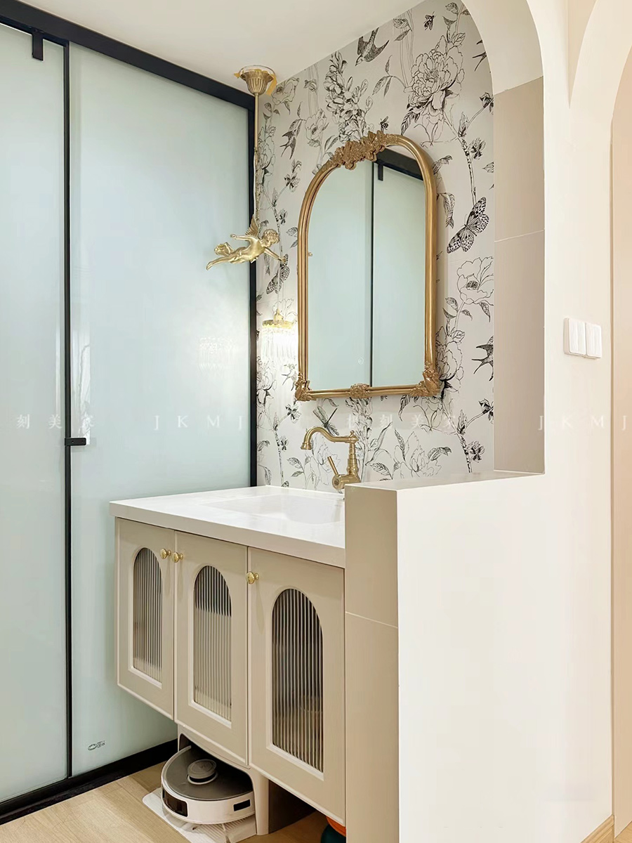 全屋以奶油白为基础色调,搭配法式吊灯、挂画,整体更有氛围感