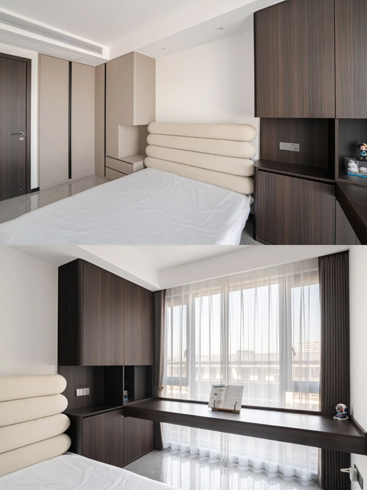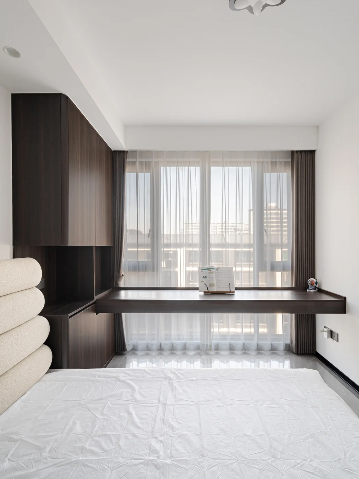 靠窗整面书柜+悬浮书桌,采光好娃学习专注