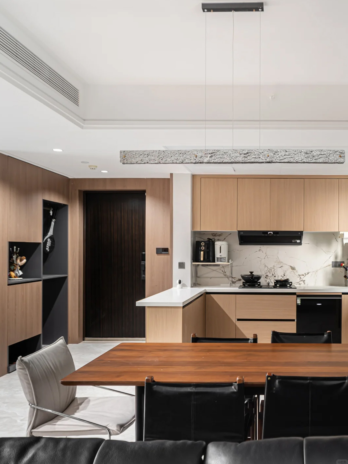 高级材质:岩板、木纹和金属元素的巧妙搭配,低调中带着轻奢感,质感直接拉满!