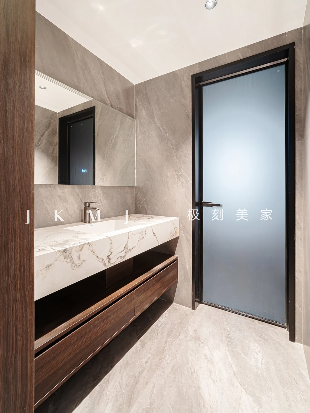厨房与浴室:橱柜和浴室柜线条极致简洁,采用隐形拉手。大量使用岩板、亚克力一体盆,实现无缝、易清洁的效果。